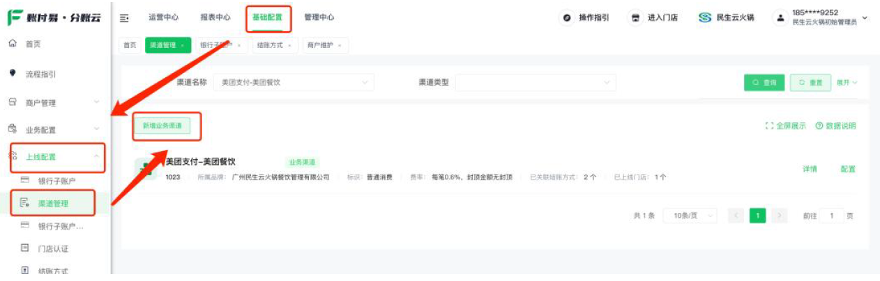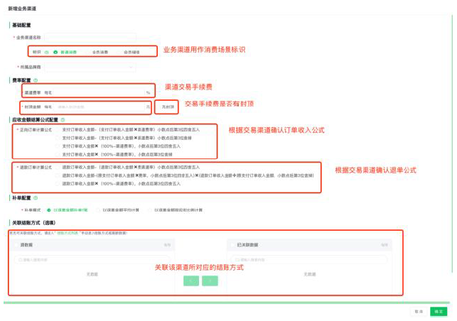 根据实际门店产生业务创建对应的业务渠道,该业务渠道主要为归集各平台所用到的结账方式及支付费率