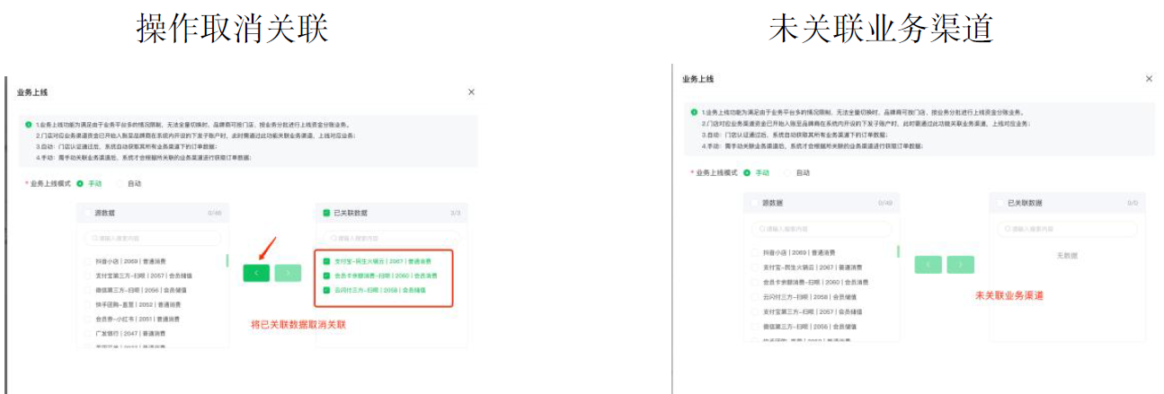 将门店已关联的数据进行取消关联操作。操作完成后,将不会再参与稽核