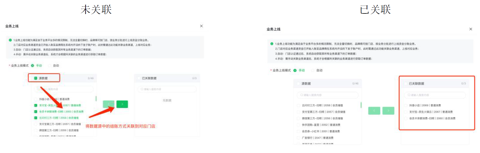 将申请的下发子账户,绑定至本品牌所涉及经营的业务平台(务必与申请下发子账户时设置的绑定关系保持一致),用于接收各业务平台结算资金