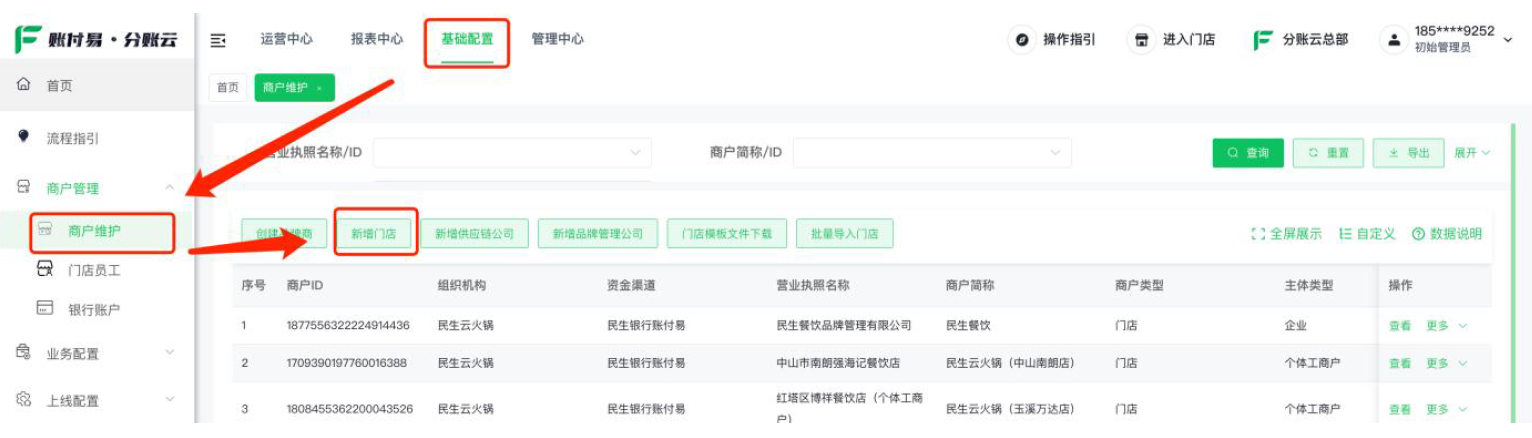 操作路径:账付易后台—基础配置——商户维护——新增门店