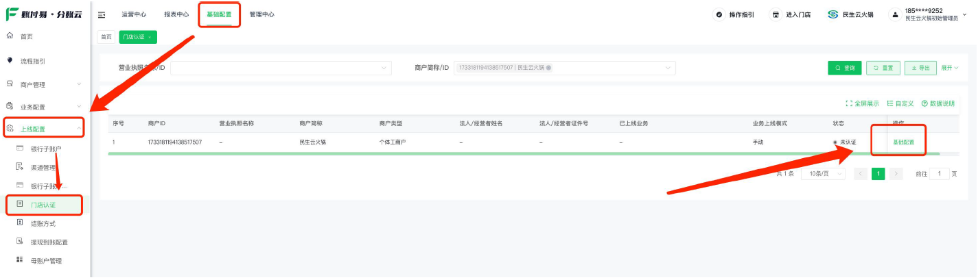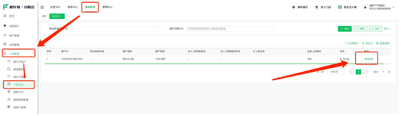操作路径:账付易后台—基础配置—上线配置—门店认证—基础配置