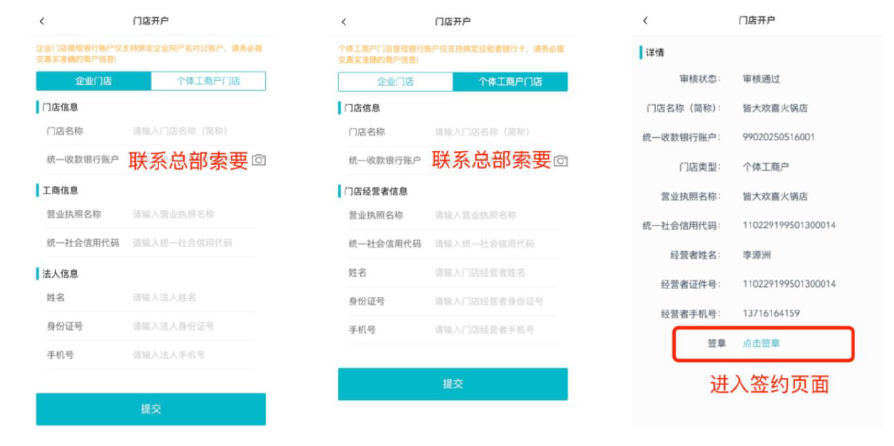 信息,提交后根据页面引导完成实名认证或在线签约即可“统一收款银行账户”需联系总部索要,随意填写无效