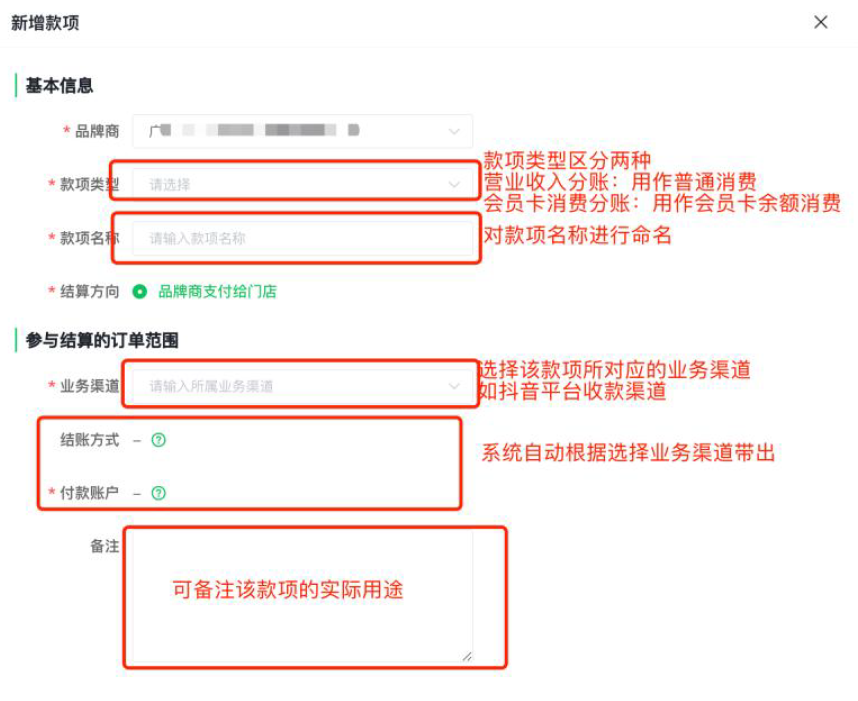 如新门店上线与已上线门店款项相同则可沿用,不同则需要进行新建