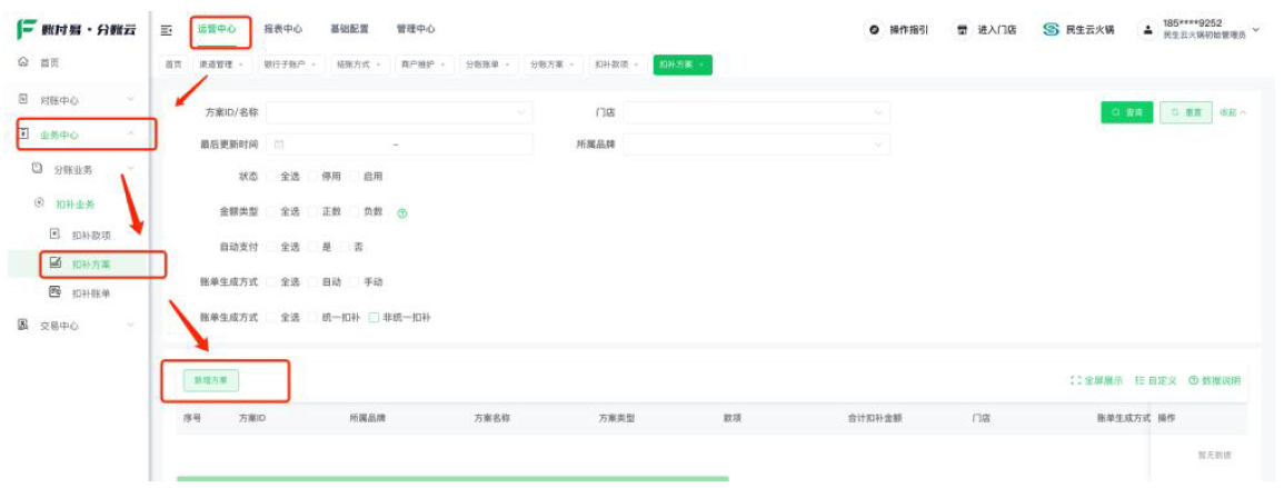 操作步骤:账付易后台—运营中心—业务中心—扣补方案—新增方案