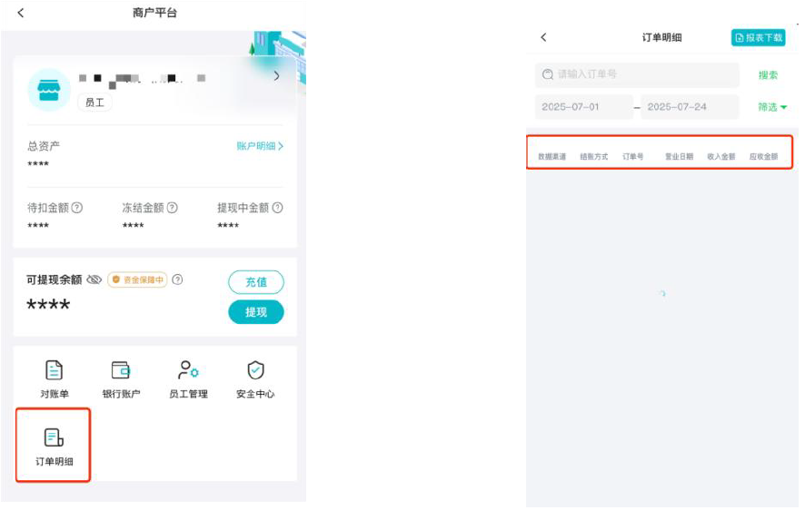 门店可查询不同业务平台订单明细,方便进行门店对账